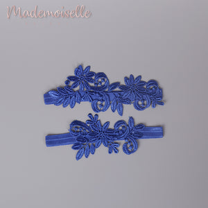 • An elegant set of two blue wedding garter, decorated with French lace applique and elastic backing for comfortable wearing.