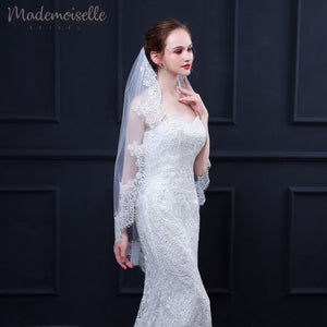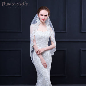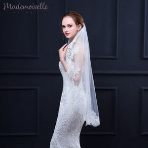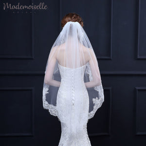 This beautiful veil is made with quality soft tulle with french eyelash lace applique embroidered to its edge. A simple and dreamy veil perfect for an elopement or outdoor wedding.