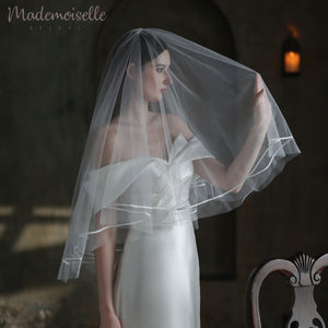 • Fingertip Veil with blusher  (Veil length: 90cm and a 70cm blusher)
