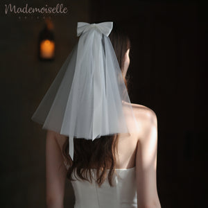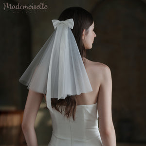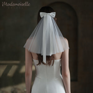 • Add a touch of classic elegance to your wedding look with the Ember Veil. This short, two-tier veil is made from soft, high-quality tulle that gracefully frames the face and shoulders. The delicate satin bow adds a charming and feminine touch, making it a perfect piece for brides seeking a traditional yet stylish veil.