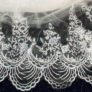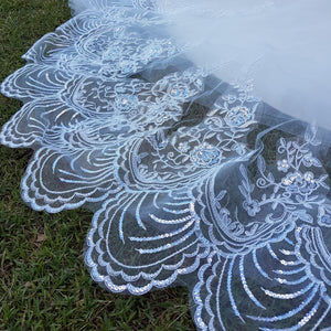 The Estelle Veil is generously embellished with an intricate vine embroidery and delicate sequin lace embellishment.
