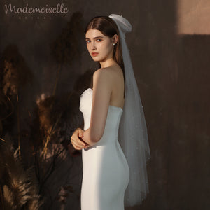 • Add a touch of elegance to your wedding day with this exquisite bridal veil. Crafted from high-quality tulle, this veil is designed for the modern bride. Its delicate bridal white colour complements a variety of wedding themes, while the graceful oversized bow and pearl beading details add an extra layer of sophistication.